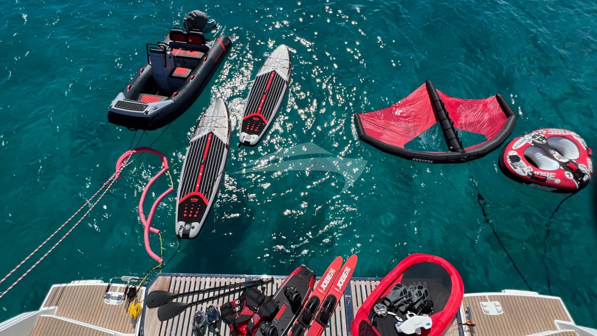 Valentina has her powerboat licenses and all the necessary experience to take guests ashore to explore, have a desert island lunch or be whizzed around the bay on one of the many water toys aboard. She also enjoys recharging her battery with yoga so why not join her for a sunset session on board.