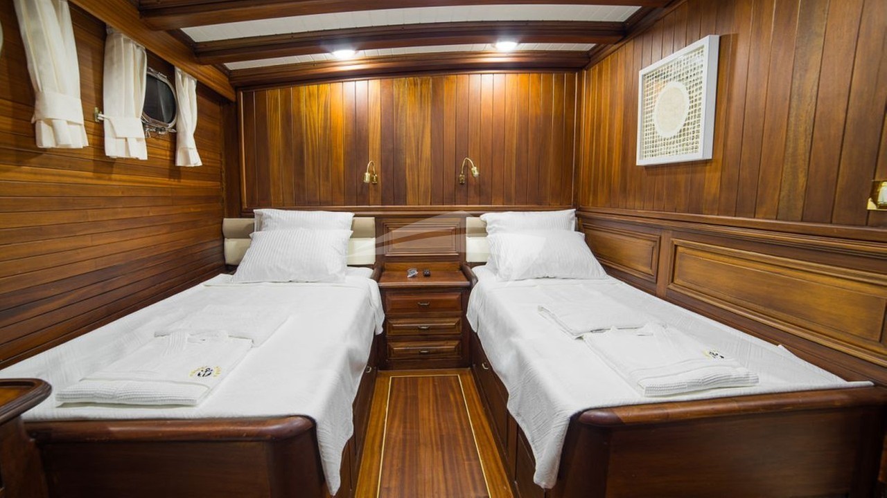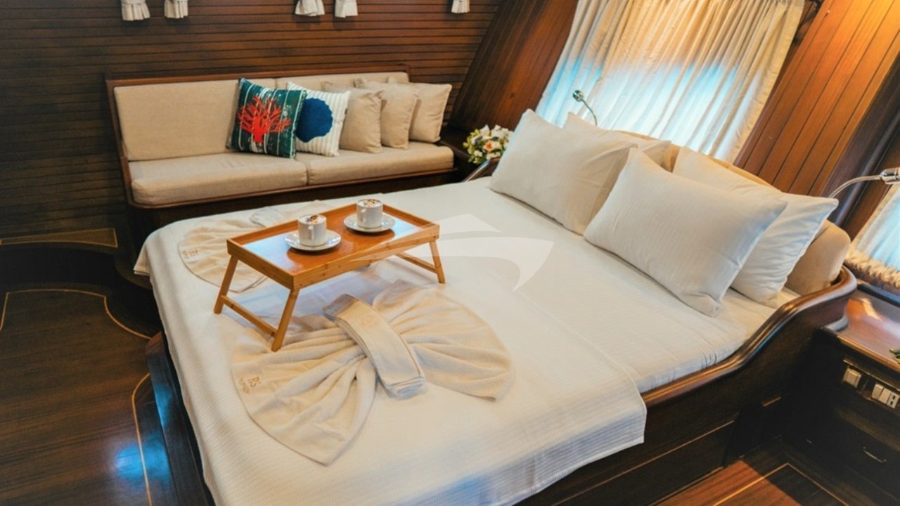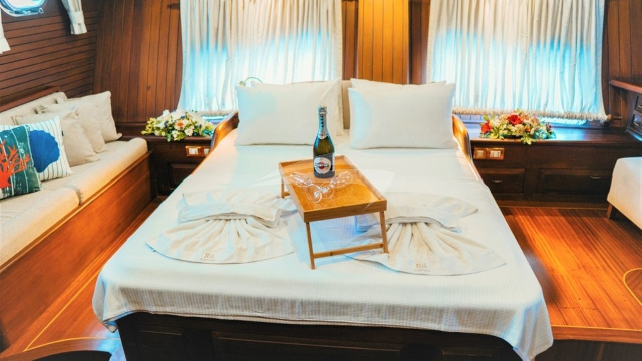 Up to 10 Guest; 1 Master, 4 Double cabins, A/C, Wardrobe, Safe Box, TV in all the cabins, shower box and home type toilets in all the cabins, Seperate crew cabins.