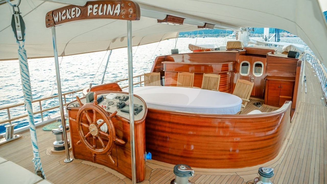 Wicked Felina, our 5-Cabin Gulet with a Capacity of 10 People, on our tours departing from Bodrum, Gokova, Marmaris, Gocek and Fethiye.