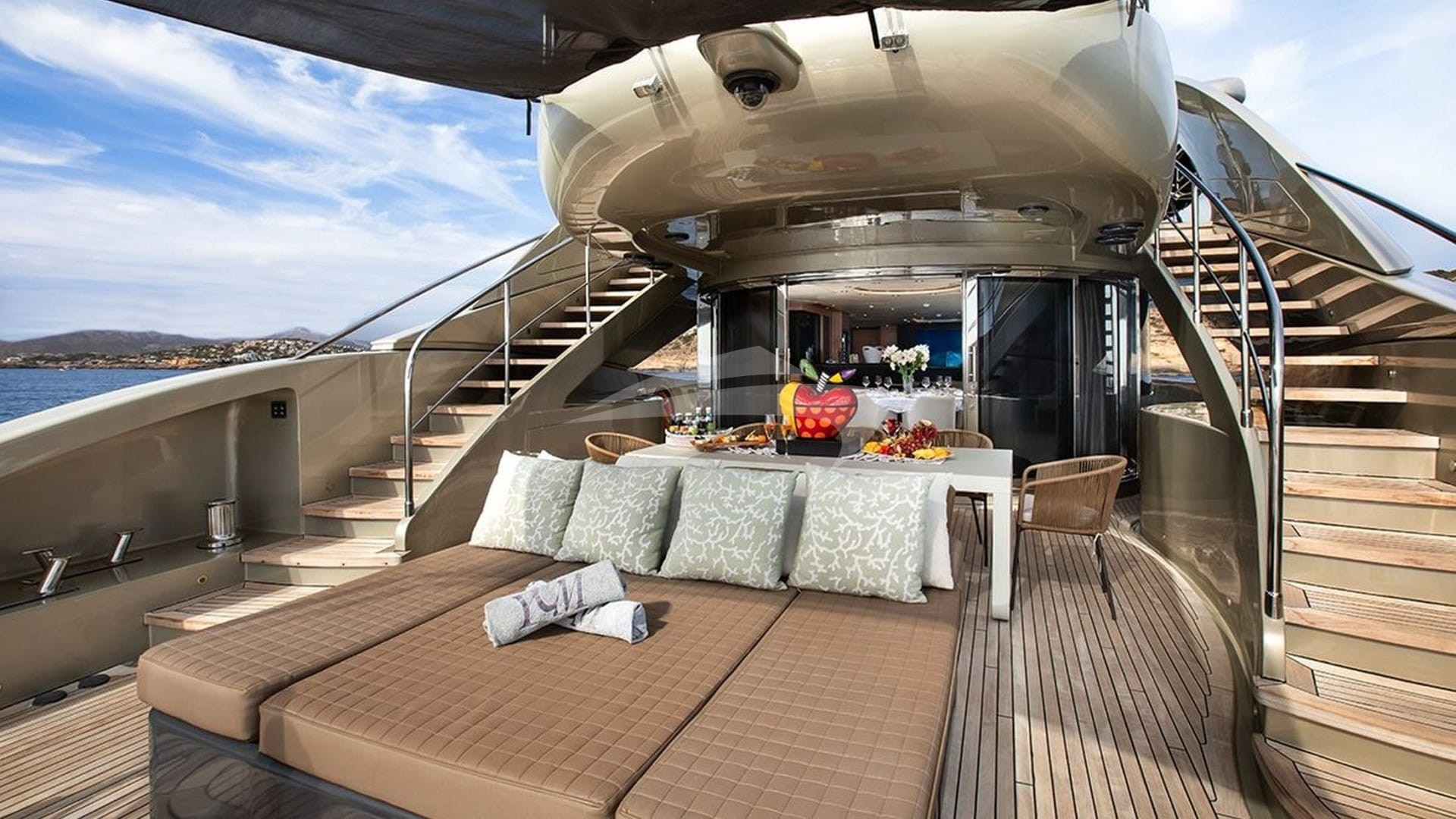 Her well-appointed, spacious deck areas are designed for maximum flexibility, adaptable to every situation from private sunbathing to elegant cocktail parties.