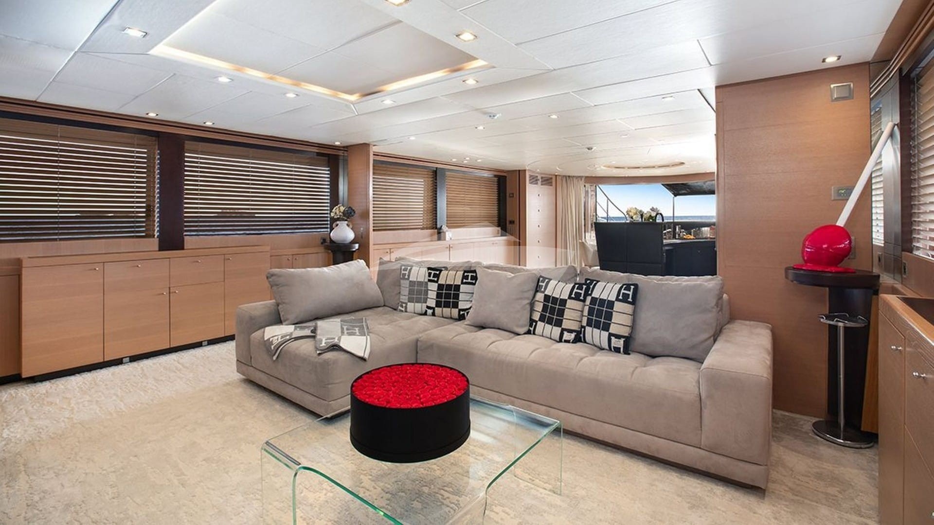 A stunning superyacht boasting large volumes.