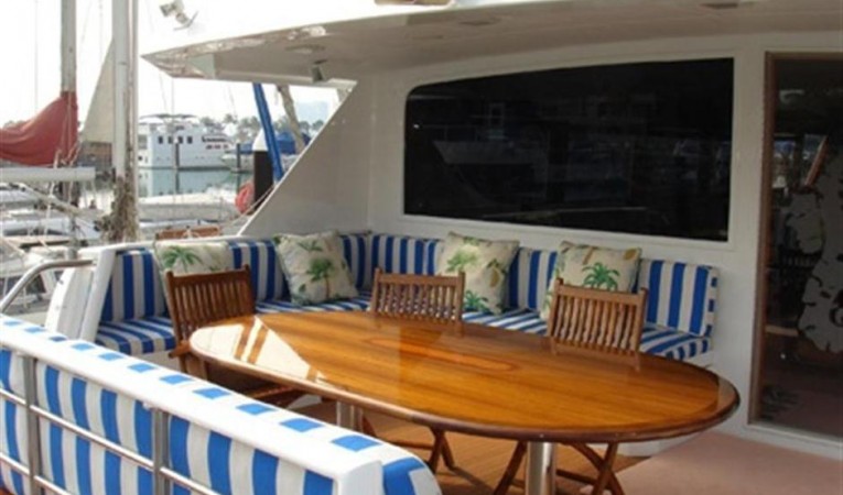 Built full beam the vessel offers an expansive interior including enormous salon and master state room. Along with the master stateroom there are three en-suite guest staterooms and 3 crew cabins.