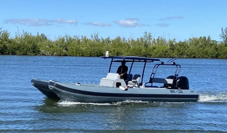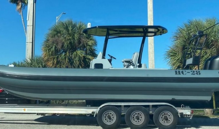 This is a unique opportunity to own a new custom built Novurania 28' Catamaran without the long wait caused by supply chain issues. Most every detail of this boat was customized for this owner. Besides the standard console, front hydraulic bow ramp and twin engine hydraulic jack plate, the top and rear seat/arch were customized. The forward side seating, hand rails and boarding steps were removed for additional deck space which is covered in SeaDek. It has two 8000 series 12" Garmin screens, Garmin sonar, Garmin 315 VHF with AIS 800, VHF Ram Mic, Fusion MS-RA770 and a FLIR M232. The custom paint and appointments make this a hot RIB on the water!