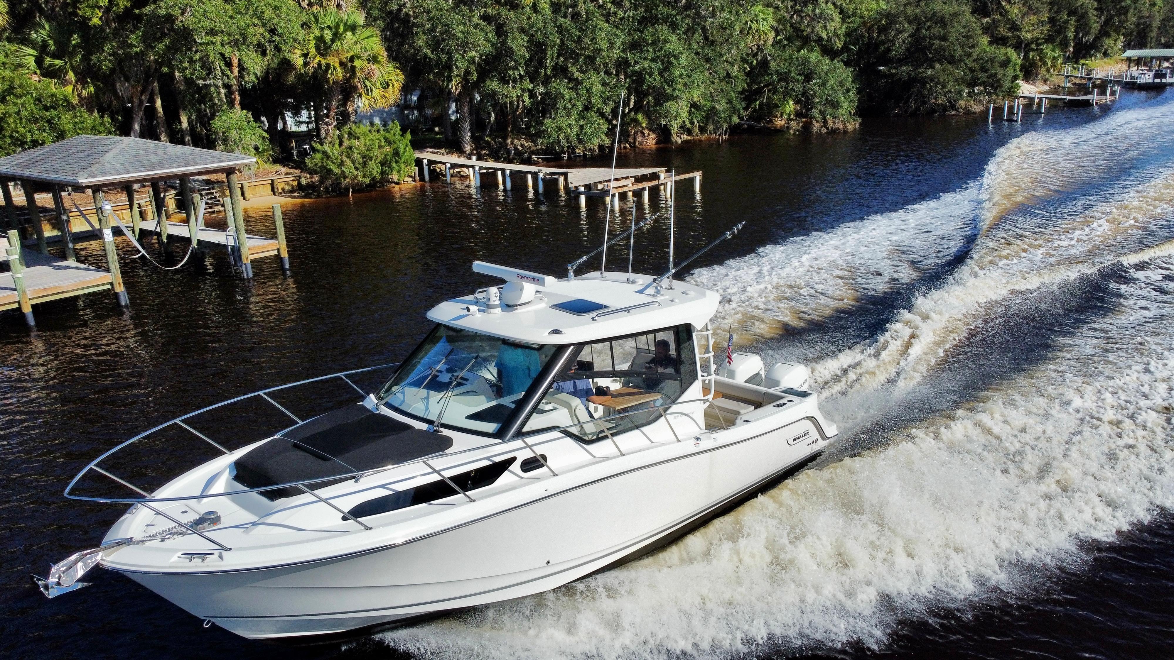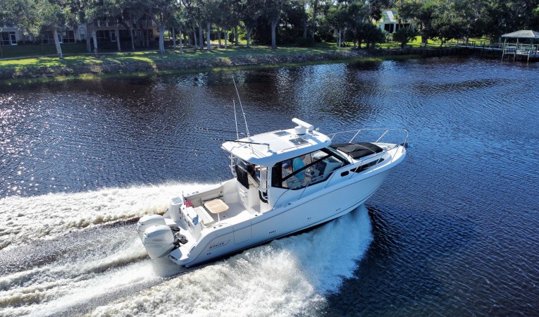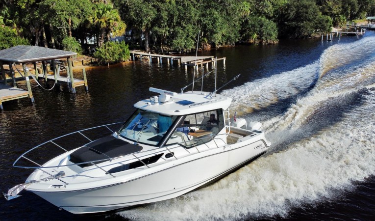 Fish, cruise, never have to choose. With the 325 Conquest, “split personality” takes on a whole new meaning. This adventurous boat is so much more than a cabin cruiser: Designed for maximum versatility, the 325 offers purposeful amenities for all your favorite activities. Notable features include the ultra-convertible port lounge, a full front glass windshield for incredible visibility, and a spacious cabin perfect for overnighting. And thanks to a keel-up redesign of its hull, the Conquest delivers smooth, seamless performance with better planning and stability than ever before.
