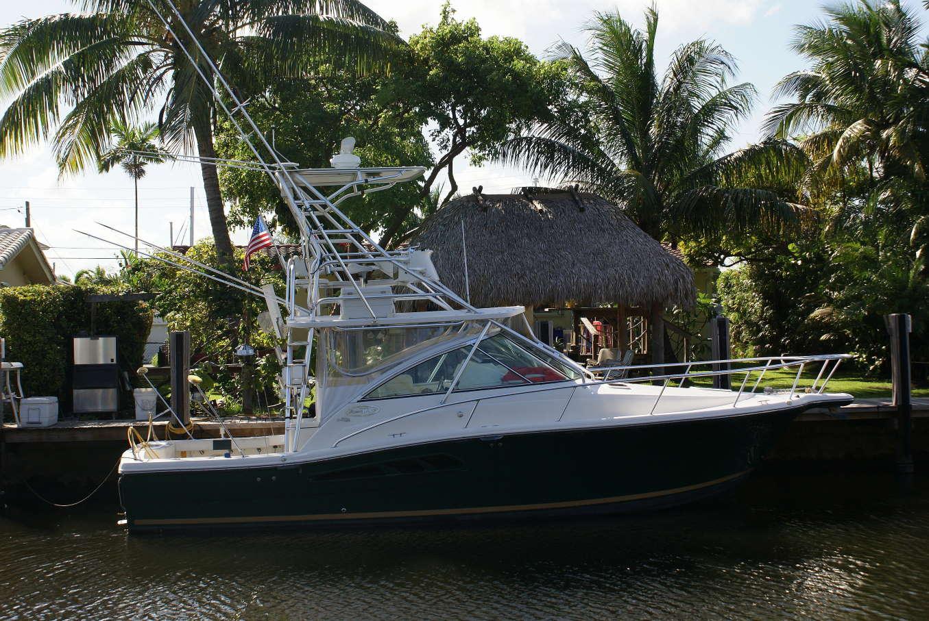Lovely Barta Edition 33 Rampage Express Fish. All the goodies one would expect like radar\plotter, auto pilot, A\C, generator, large fish lockers and live well, spare props, microwave, cooktop and much more. Tons of rod holders and rod and reel storage. New upholstery in the tower. 1000 hour service already done. Will consider smaller center console in trade. Seller added an additional 30 gallons of fresh water capacity, new tower seating and upholstery, a manual teaser reel and has recently bottom painted and put Prop Speed on the running gear. Also installed a complete, new Wi-Fi entertainment system in the salon. Cooling systems update\inspections done 7/2017.