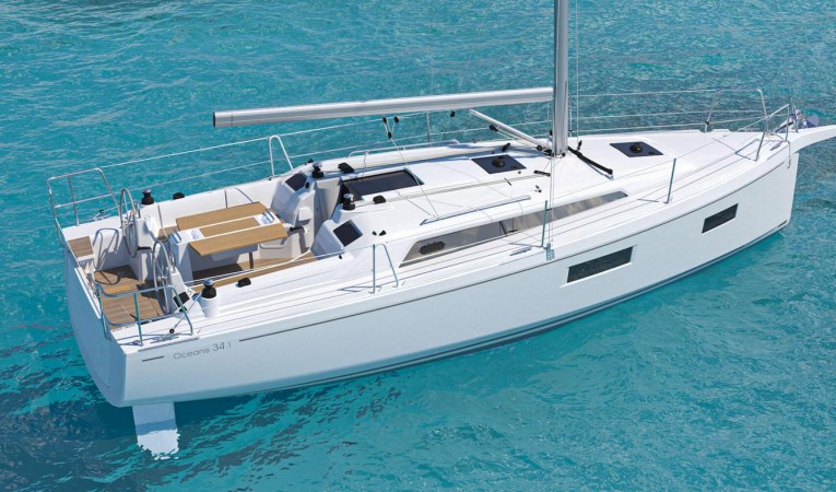 Life on board with family or friends has always been the core focus of all Oceanis designs, and the Oceanis 34.1 is the perfect example of this approach, providing the promise of safe cruising experiences aboard a boat that is easy to handle no matter who is aboard. The flared hull design and long chine provides for greater interior spaces yet guarantee a high-quality cruising experience. The interiors are bright and airy, with four deck hatches and four hull portholes guaranteeing loads of natural light and ventilation throughout the cabin. The starboard L-shaped galley, the head compartment to port, the large full-beam salon with two sofas and a large table for convivial dining ensure maximum cruising comfort for up to 8 passengers.