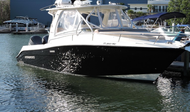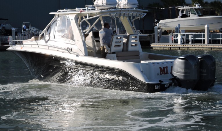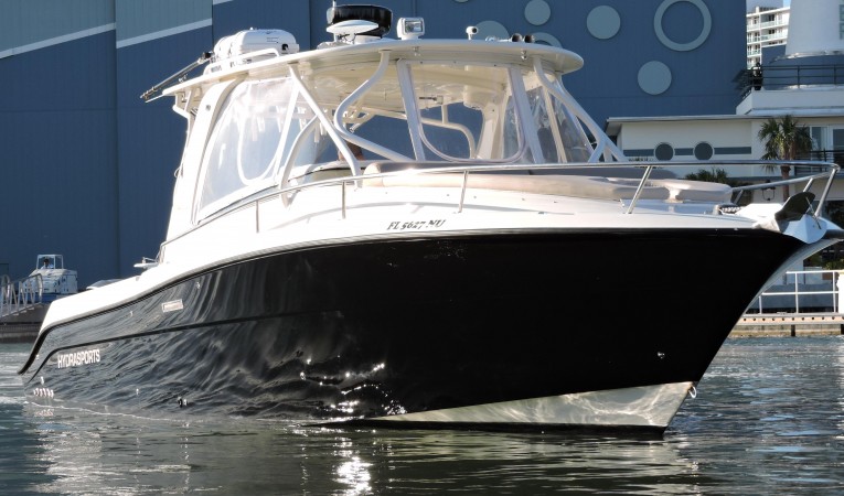 "Mi Amor" is a luxury-class express that rides on a Kevlar-reinforced hull with a wide beam and an aggressive 23 degrees of transom deadrise. Part fishing machine and part day cruiser, the versatile layout includes L-lounge seating forward of the helm and a roomy cockpit. Fit and finish is a match for most anything in her class.