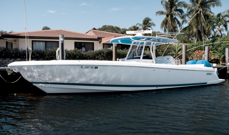 This is the newest pre-owned Intrepid 345 Nomad on the market --- an amazing opportunity to get an almost new boat that has never been fished without waiting for a build. She's powered by the reliable, quiet, and efficient twin Mercury 400 Verados with under 100hrs and the extended 7yr warranty.