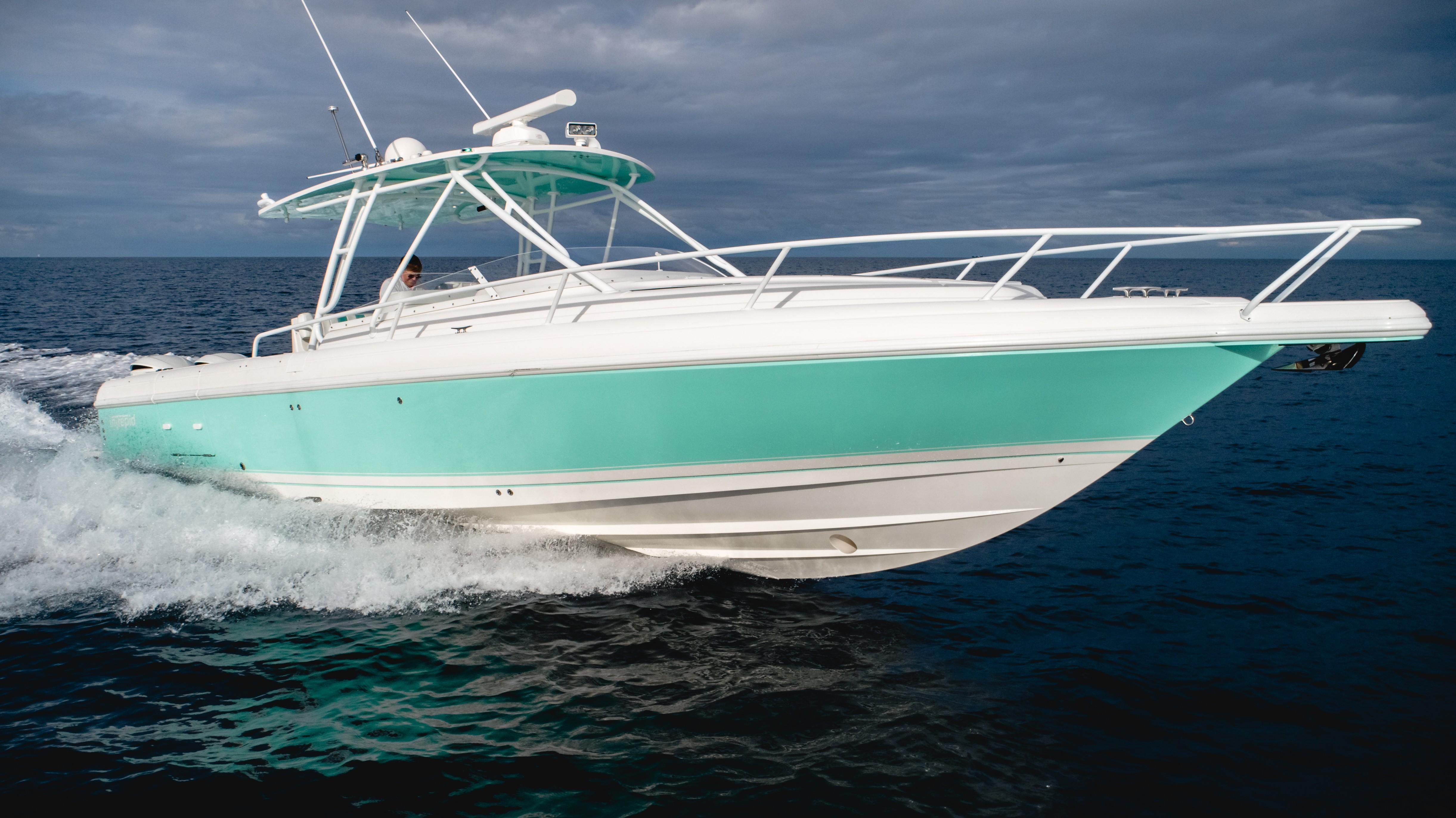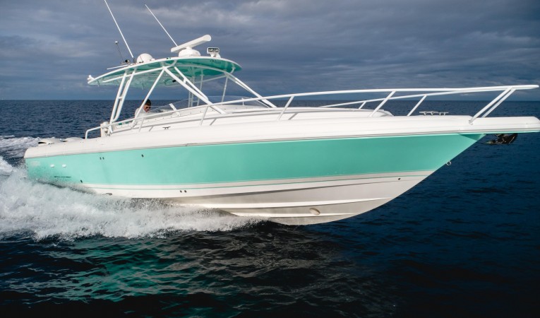 The Sea Foam Green (hull sides, cushion accents, and underside of the hard top) pairs well with the bottom, boot stripe, and powder coated aluminum --- this boat receives envious looks wherever she goes.