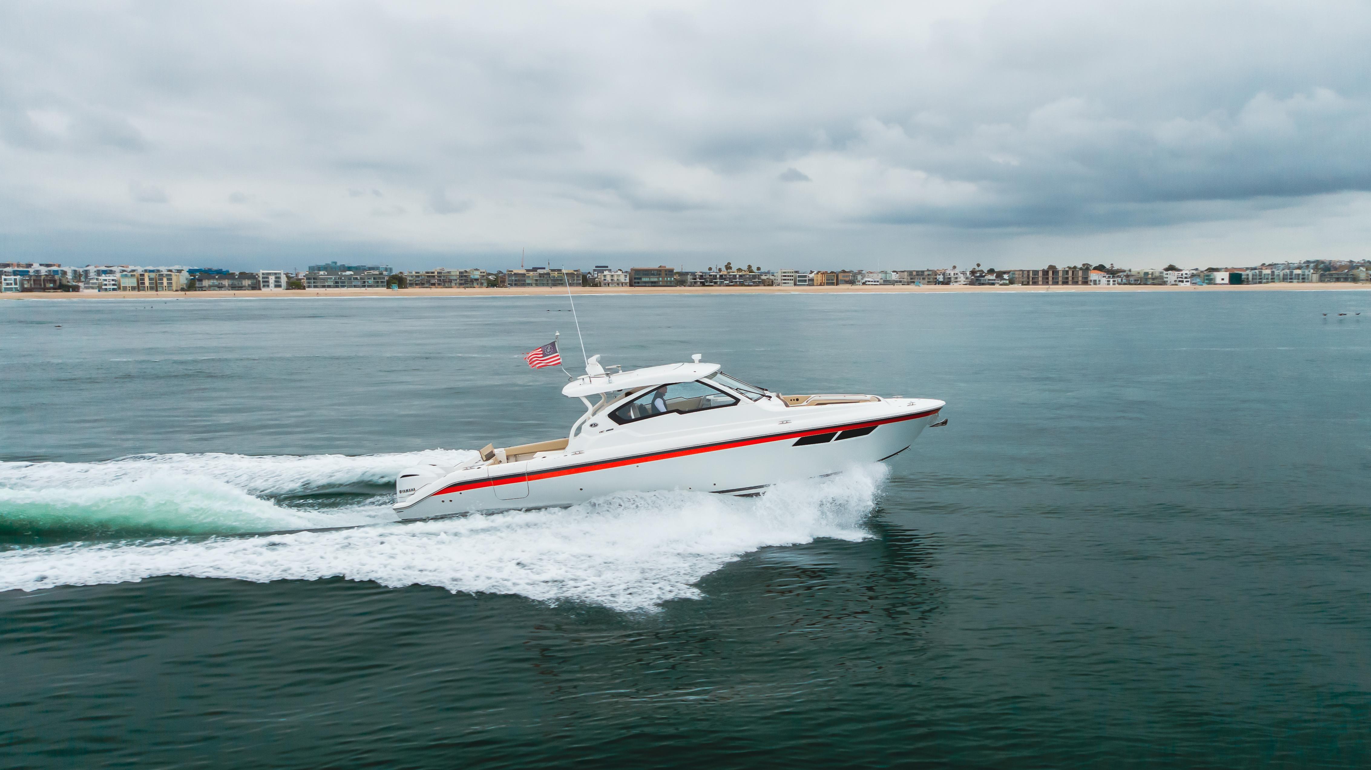 This Pursuit 365 Dual Console is the perfect boat for fishing, entertaining or family cruising. Powered with TRIPLE Yamaha 300s with 400 hours. This dual console model offers a spacious cabin, separate head, retractable roof and great forward and aft entertaining areas. The cockpit features a grill, wet bar, refrigerator and fold away seating for all your boating needs. Features joystick control and bow thruster for easy operation!