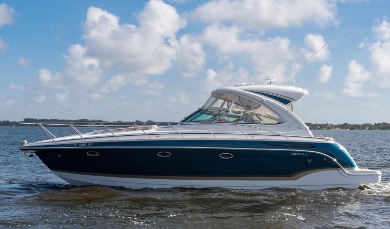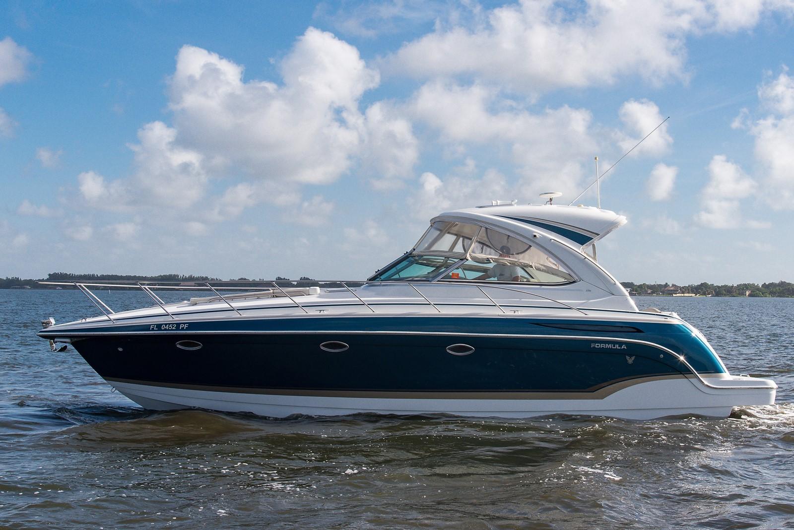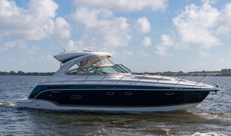 The Formula 37 PC is by far one of the best in its class. Marmaduke has endured years of pampering from her current original owner and is one of the nicest 37 Formulas on the market. Always lift kept and covered, she surpasses the most discerning buyer’s expectations. An interior headroom of 6’6” and sleeping accommodations for up to 6 guests exemplify the wonderful layout and premium quality construction that Formula offers. The cockpit easily seats 8 guest and can also quickly convert to a sun pad. There is a cockpit wet bar, sink and refrigerator as well as a cockpit TV for your outdoor entertainment. The walk-thru windshield is one of the best features making access to the bow and sun pads easily accessible. Maneuverability is made simple and decisive with the Mercury Axius joystick drive control option. S he is aggressively priced and will not disappoint. Call today to schedule your private showing or to answer any questions you may have.