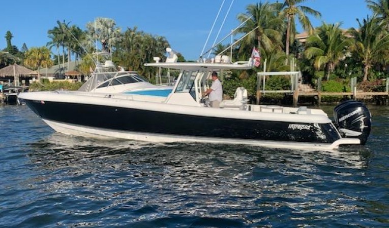 You can expect the same smoothness on the water that every Intrepid is known for. A smooth, dry ride and maximum deadrise are the result of Intrepid's industry-leading transverse stepped hull design. Vacuum-bagged, hand-laid knitted uni- and multi-directional fiberglass laminates, foam-cored hullsides, transoms, boat deck liners and wood-free construction provide unprecedented strength, rigidity and safety without the performance-robbing weight.
