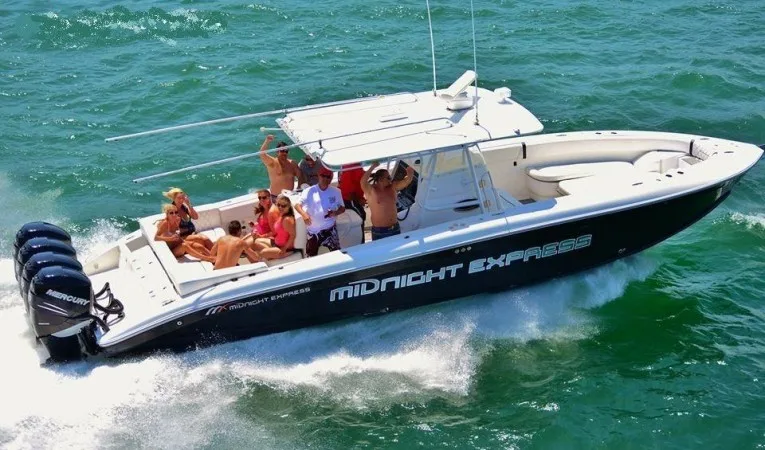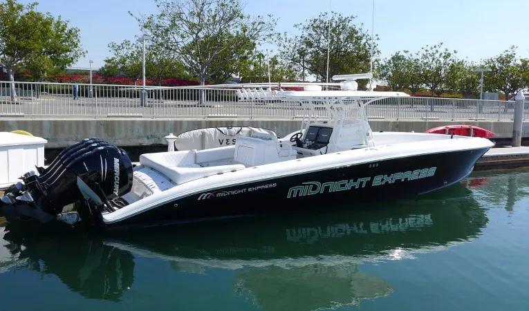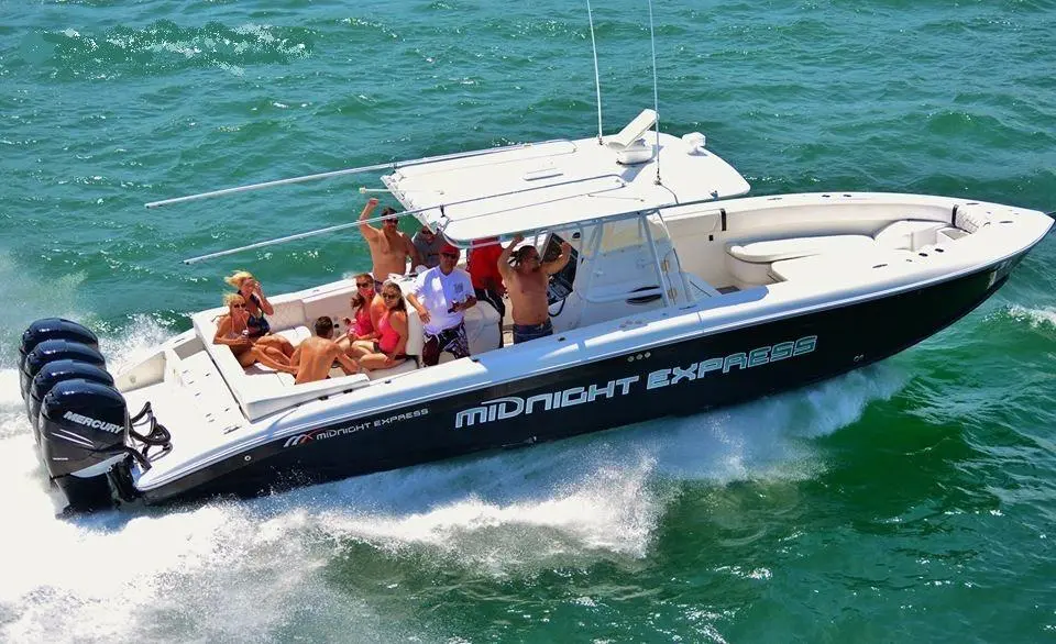 You can say yes to all three with this Midnight Express 37 Open. It has FOUR Mercury 300HP engines that will take you up to 70 MPH. The wide beam makes it a spacious and stable platform for fishing. And if all you want to do is chill, it has comfortable seating and a great stereo.