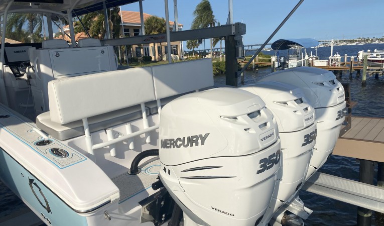 The boat is powered with the tournament-proven Mercury Verado supercharged 350s which will pin you to your seat at 80mph and cruise to the fishing grounds at 50mph.
