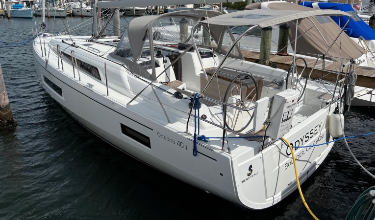 How can you enjoy life at anchor as much as sailing? With the innovative flared hull design of the Oceanis 40.1, and steps extending over a third of the bow, BENETEAU has broken new ground but made no concessions. The result is a hull that has true speed potential and is stiff under sail. Above the waterline, her deck plan and ultra-spacious interior by Nauta Design is unheard of on a boat this size. You cannot help feeling that you are aboard a 45 foot cruiser!