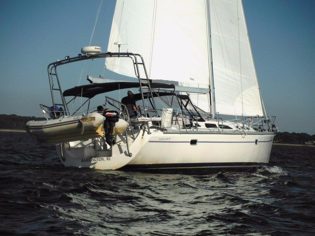 This Catalina 400 MKII is the 3 cabin, 2 head version. The cockpit is very large, lots of room to entertain friends. The boat sails great in light air and also in a big breeze.