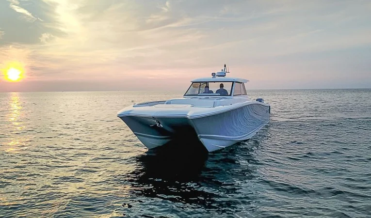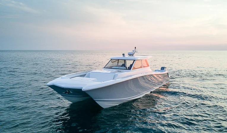 Introducing the 2022 40 Foilborne Powercat. Cultivated by the world’s best yachtsmen and designers (Morelli and Melvin), the Foilborne 40’ catamarans are built to deliver superior performance. With a long-range and fuel-efficient ride, these boats are designed to get you to your destination quickly in powerful, spacious comfort.