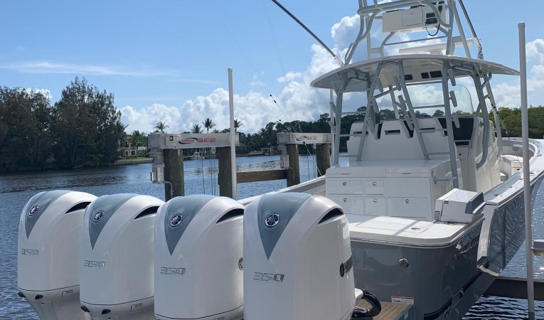 Why wait for a new boat? When you can a like new one today! Everything on the boat is brand new from upholstery to the electronics.. Boat is fully equipped with a Sea Keeper and Yamaha Helm Master joystick controls down in the helm and tower. Boat also has an upgraded 12Kw open array radar and painted engines to match the hull. She is powered by quad 350 Yamaha's with 225 hours and warranty until 2023. Boat is located in Jupiter, Fl easy to see! Call for more information