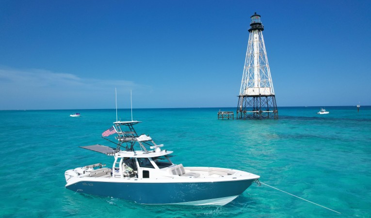 Factory stock photography shows Marlin tower which is included on this unit. Hull color will vary from images.