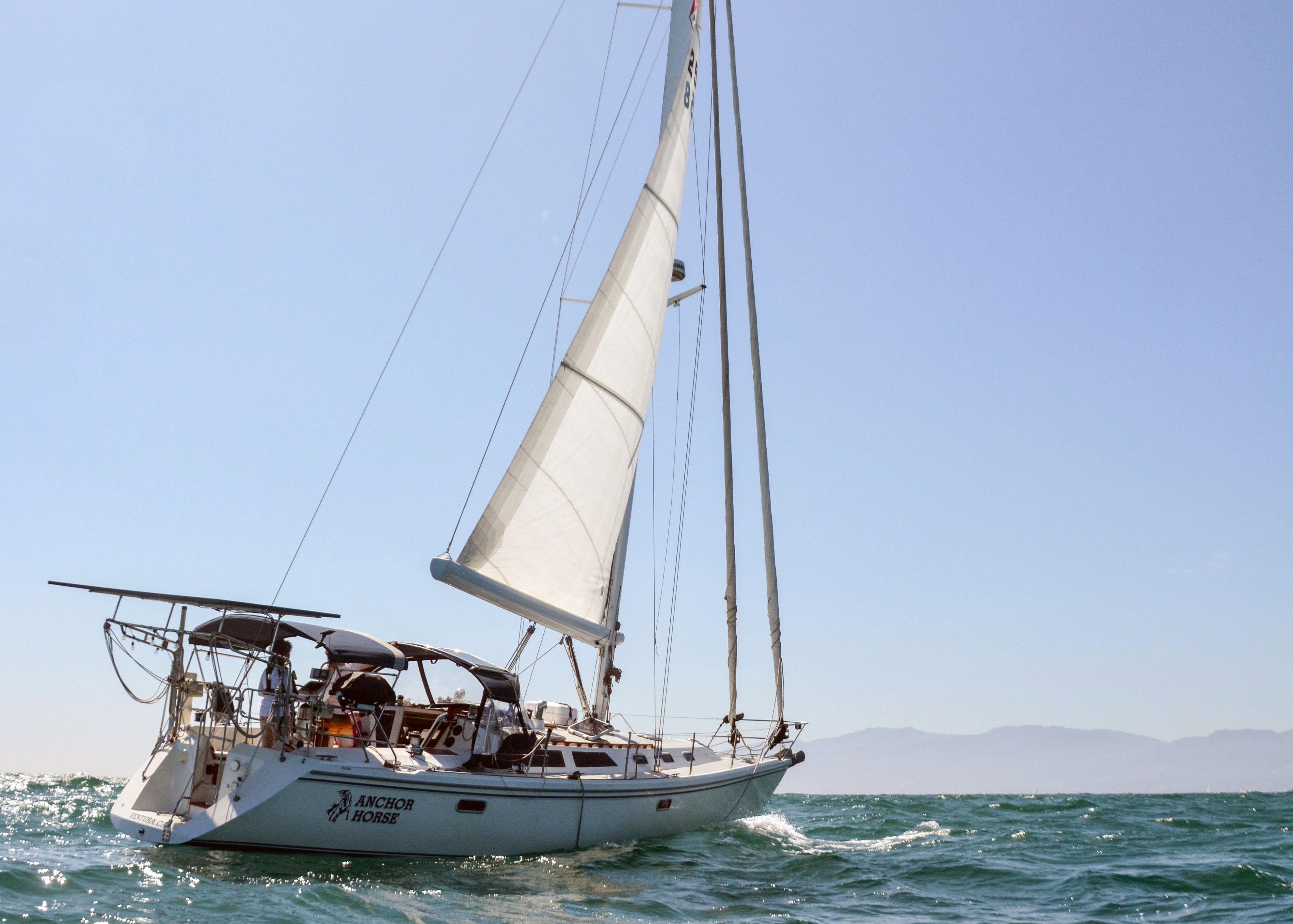 Starting from the cockpit, there are new Zarcor companionway doors. From the companionway steps, the galley is to port, with a walkway aft leading to a supply storage locker that also contains a custom stern anchor locker. There is a pantry and a custom door to enable access to the engine water pump and the rear of the engine, both off the walkway. Across from the galley is the head featuring a Airhead composting toilet. Aft of the head is the guest aft stateroom, comprising a double berth, hanging locker and drawers with an opening hatch and 2 portlights.