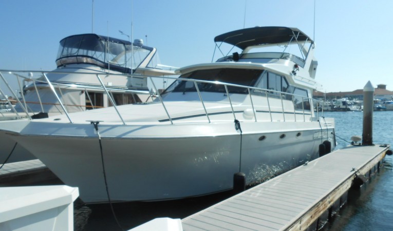She rides on a solid fiberglass hull with a wide 15 foot beam (wide for a 42 footer) making for an extremely smooth ride and spacious interior. The Bi-level Salon / Pilothouse creates a large open entertaining area with panoramic viewing from all areas. With two private staterooms with in-suite heads creates the privacy and elegance found in much larger motor yachts. Navigator founder (Jule Marshall who previously founded and owned California Yachts) created the ideal pocket motor yacht with the Navigator 4200 Classic. If you are looking for the amenities found in larger motor yacht, but on an affordable platform then Reverie II is a must see.