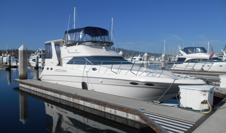 Sea Ray creatively pioneered the aft cabin design and took it one step forward by incorporating European style in an American-built yacht. The 420 Aft Cabin's sleek style hull and deck offers luxurious and spacious accommodations in a seaworthy yacht that can offer high performance. Sea Ray's design team incorporated the hull design to include prop pockets and an underwater exhaust allowing for more interior space than seams possible in a yacht of this size.