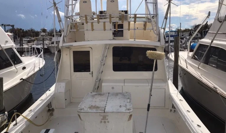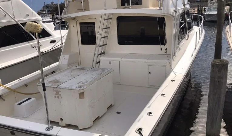 COCKPIT: - Walkthru transom door - Teak Coaming - Tackle center - Freshwater washdown system - Saltwater washdown system - Reinforced cockpit sole for fighting chair - Cockpit sink - Cockpit controls (Detroit controls were removed when he installed the new engines-no controls are there now)