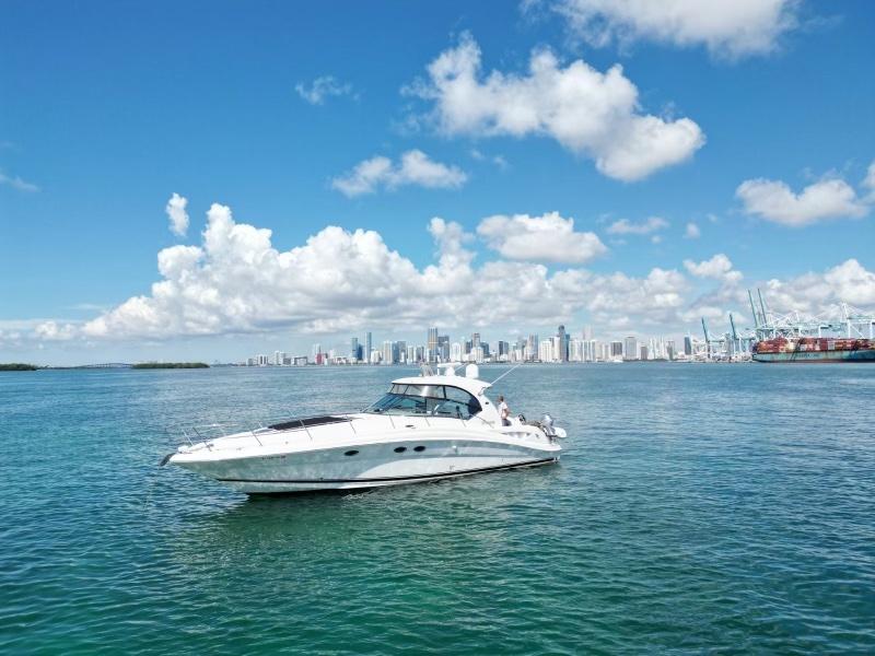 Adding to the convenience, a separate head is centrally located, streamlining access to essential facilities. The Sea Ray 44' Sundancer is a vessel that prioritizes simplicity and comfort, ensuring that every journey on the water is a serene and enjoyable experience. Slip in Miami is assumable but not included in the sale.