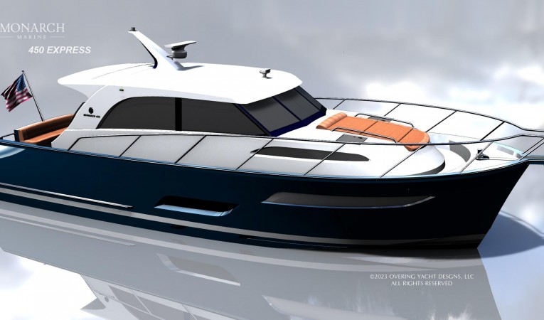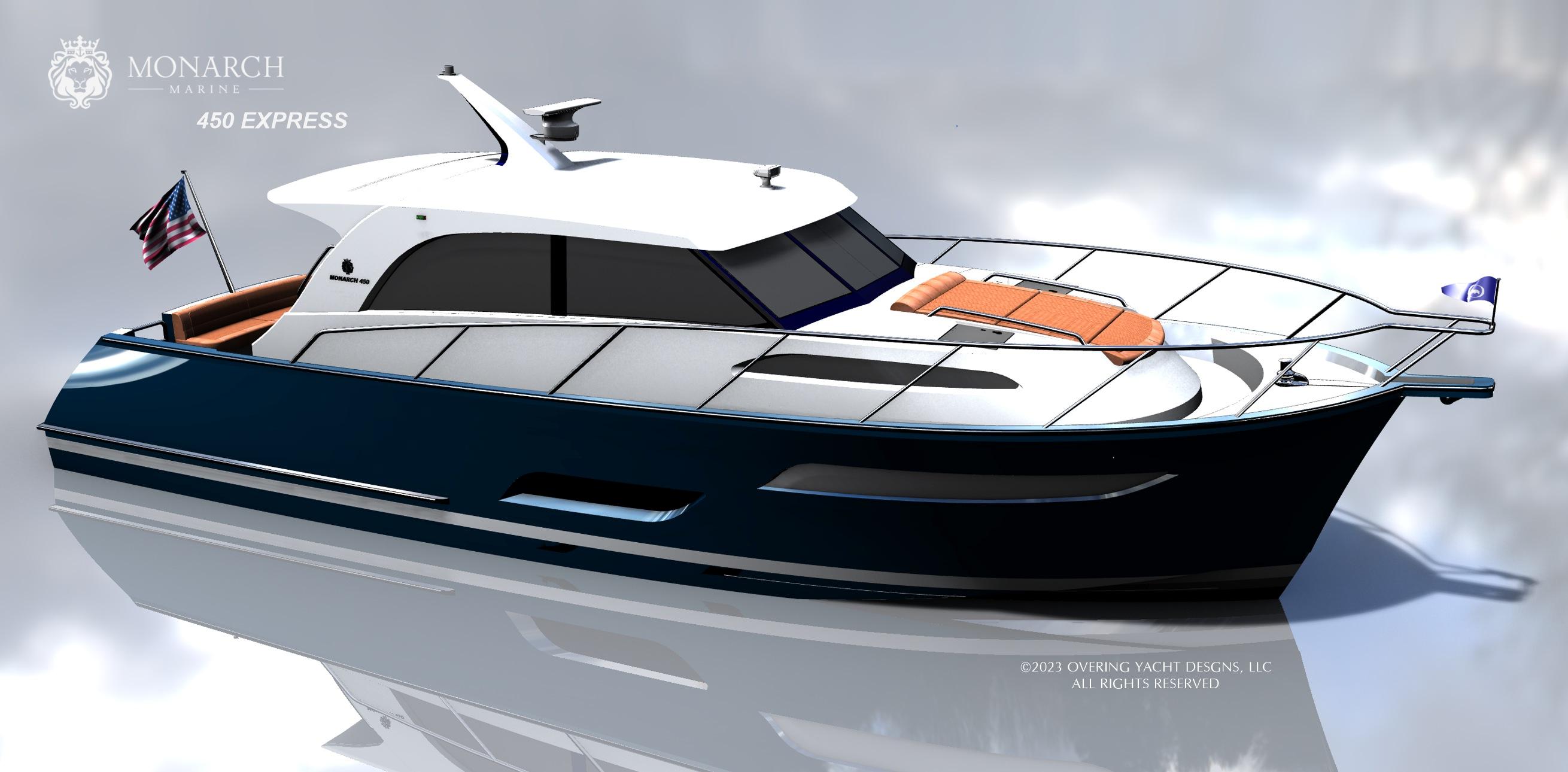 The Monarch 450 is one of the latest designs from Overing Yacht Designs (OYD). The design brief was to create a mid-40's express unparalleled in volume, comfort and seakeeping within the express style yacht. The 450 offers greater volume than any other "Picnic/Down eastern" style production boat in her size range!