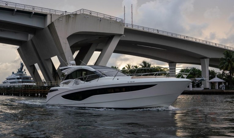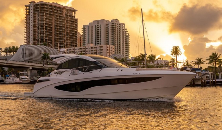 This beautiful boat is in great condition. Volvo IPS 600 POD drives with joystick for ease of docking. Includes a large tender garage and hydraulic swim platform, electric cockpit awning, oversized air conditioning units. Garmin package.