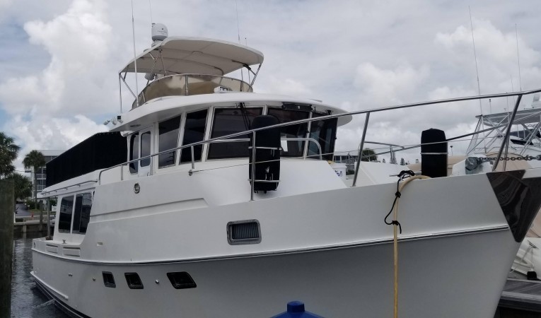 Lightning has done the Great Loop, the Bahamas and has spent much of her life in fresh water. She is beautiful inside and out and is a pleasure for two people to operate and will not disappoint in appearance and over all condition. Her two stateroom layout with two full heads makes it a joy to have guests stay with you and you can even sleep additional guests in the bunk behind the helm and on the couch. Cooking is well appointed in the galley with a three burner propane stove and a microwave/convection oven. This 50 Ocean Alexander is heavily built on a modern hull with cored hull sides and a keel deep, enough to protect the prop. 2 state rooms 2 heads with separate showers and excellent storage. Aft of the pilothouse are the galley and salon large cabin windows, teak flooring, and sliding door opening to the cockpit. The side decks are wide and well protected. There’s space on the extended flybridge where the tender and davit are located. Additional features include a pilothouse deck access door, molded flybridge steps, and transom door. This 50 Ocean Alexander Trawler is a joy to operate and is very comfortable in every way! Her autopilot and stabilizers keep her on track so you can enjoy your trip. Her bow and stern thrusters make close quarters handling a breeze. The beauty about this trawler is her reliable single John Deere computerized turbo diesel engine. With this engine she is extremely economical to operate, burning less than 1/2 gallon per mile at cruise speed. This means that at 9 mph you burn about 5 gallons of fuel per hour. With 700 gallons of fuel you have a safe cruising range of over a thousand miles!