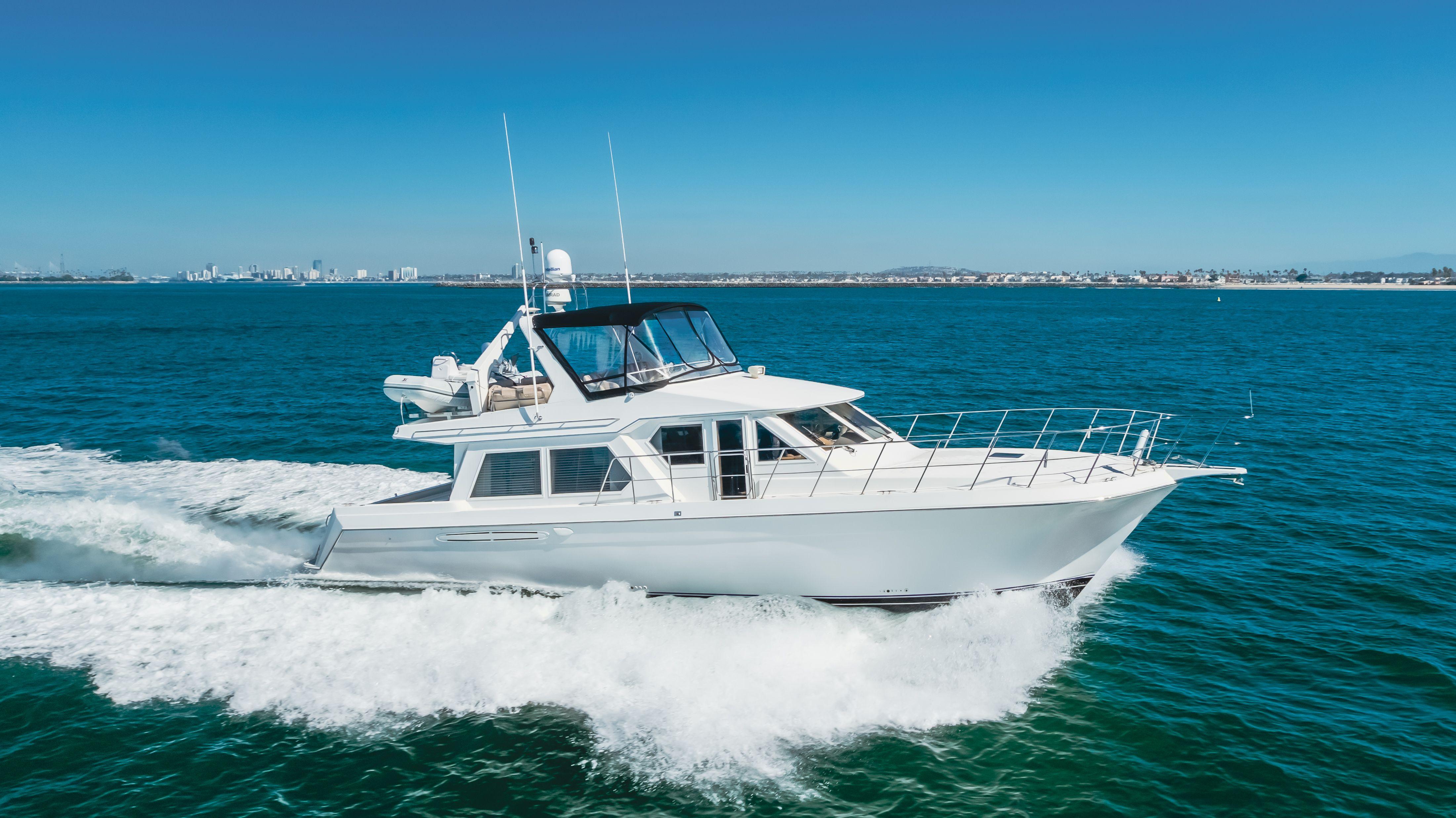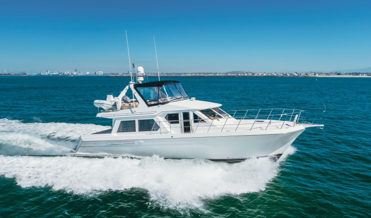 The three-stateroom interior of the 53 Classic is arranged with the galley forward in the salon and a U-shaped dinette in the pilothouse. The full-beam salon is spacious and very comfortable, and both heads contain separate stall showers.