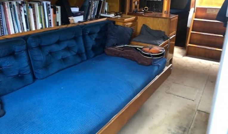 Salon: Very bright and airy with large windows and opening hatches. This is a cozy area with nice storage shelves, bookcases, and cabinets. The Hi/Lo table is very practical as a dinette and also serves as a cocktail table