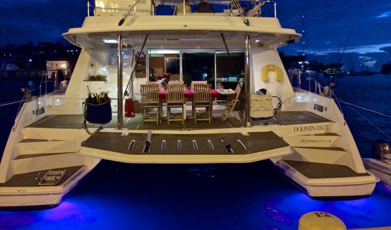 Custom hydraulic dinghy swim platform