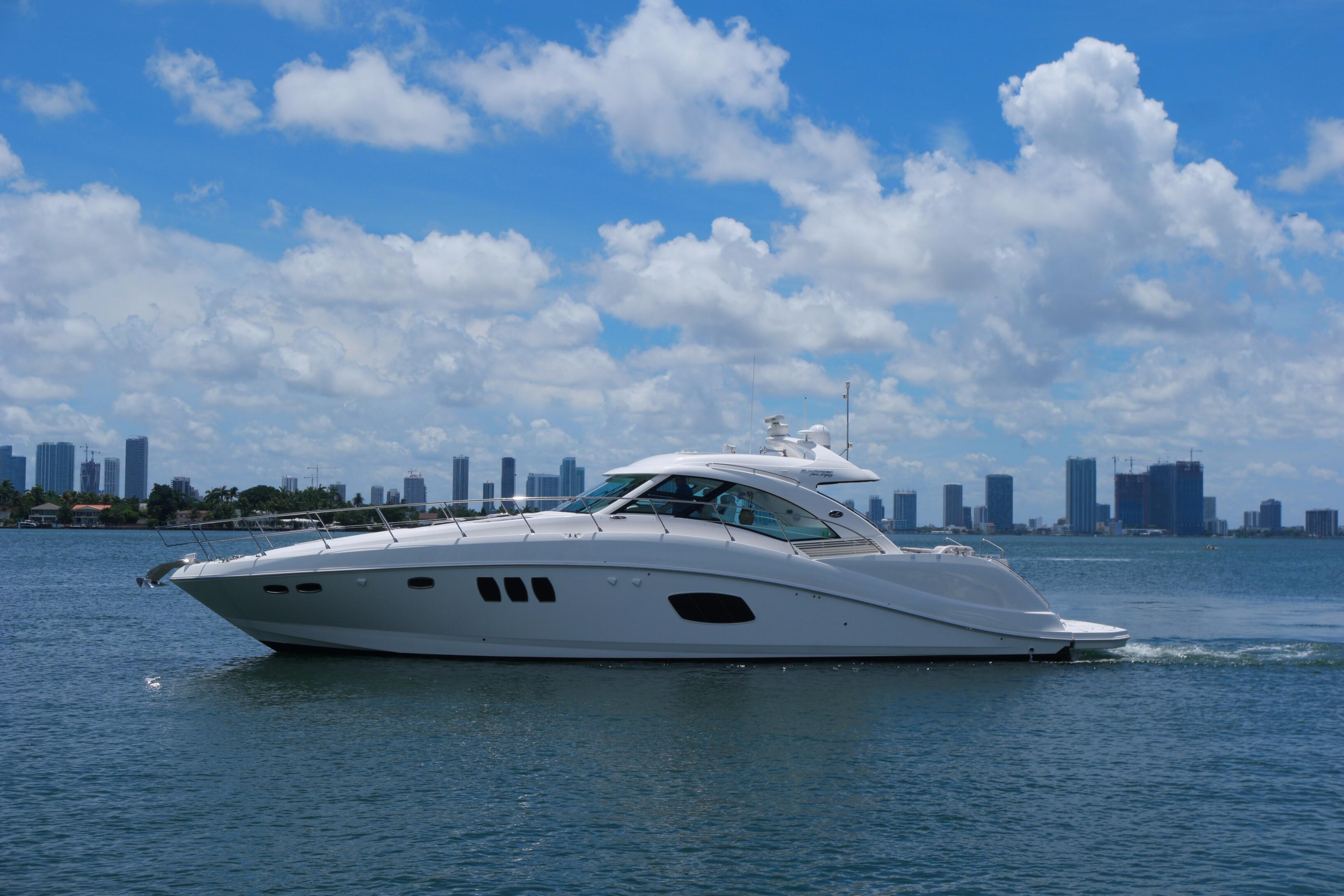 The 580 Sundancer is truly out of this world. This model Sea Ray is one of the most amazing yachts ever produced by the Sea Ray team. The wow-features are endless, beginning with a fully protected bridge deck with two retractable sunroofs, teak flooring and a 360-degree panoramic view. She includes an elegant salon with state-of-the-art entertainment center, two luxurious staterooms and a wealth of gracious amenities throughout. This specific 580 Sundancer is outfitted to the 9s including the ever popular 1100 CR Man engines, Water Maker, Hydraulic Swim platform and only 530 hours (6/8/17). The original and extremely meticulous owner of this boat has taken excellent care of his gorgeous yacht. She is turn key and ready to cruise. Call to set up a private showing.
