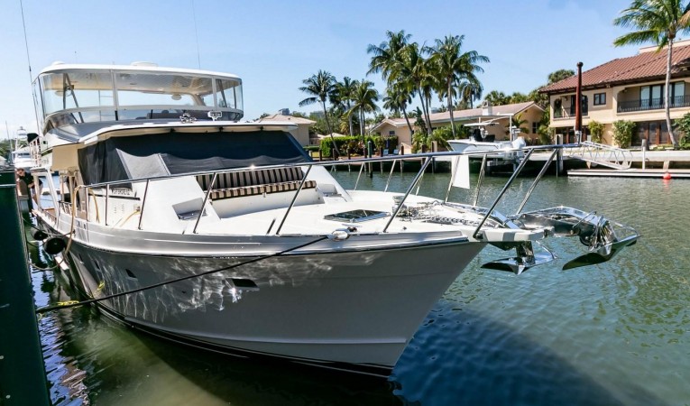 The “Gettin Lost” has tremendous seakeeping ability because of the low center of gravity and deep V forward making this a dry and soft ride. “Gettin Lost” is powered by upgraded Catepillar C= 15 865 hp Diesel engines with two Northern Light generators, Westmar stabilizers, Bow and stern thrusters, 3’ boat deck extension, keel extension, Arid bilge systems, yacht controller, sono hull barnacle protectors and the list continues. She has been continually updated and professionally maintained by her owners during their entire ownership. The owners have bought a 80’ 2013 Offshore which share the same great features as the 62’ Offshore.