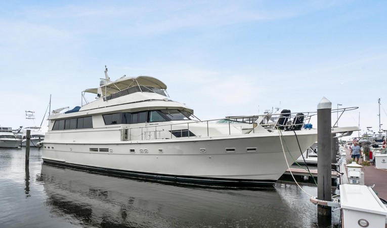 ISLAND III is a flybridge motor yacht featuring four staterooms with a VIP stateroom forward of the full beam motor room and galley up. Access to the flybridge is made easy by the custom stairwell from the wheelhouse (cost $20k). The TV in the salon is hidden in the entertainment center with a lift. The vessel is powered w/ Detroit Diesel 12V-71TI main engines/REBUILT about 120 Hrs. and two Onan 20 KW generators. This is the next 70 to sell!