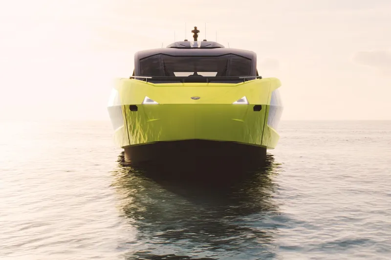 Introducing the stunning Tecnomar Lamborghini 101, a remarkable mega yacht that embodies luxury and performance. This brand-new vessel, measuring an impressive 31 meters in overall length, is crafted from durable aluminum with a sleek planing hull shape, ensuring both speed and stability on the water. Powered by three state-of-the-art MTU 16V 2000 M96L diesel engines, this yacht boasts a cruising speed of 35 km/h and can reach a maximum hull speed of 45 km/h, making it a thrilling choice for adventurous outings. The yacht accommodates up to 15 guests comfortably, featuring seven elegantly designed cabins and six well-appointed heads. Equipped with an electric windlass for effortless anchoring, the Tecnomar Lamborghini 101 is a perfect blend of cutting-edge technology and sophisticated design, promising an unforgettable experience on the open seas.