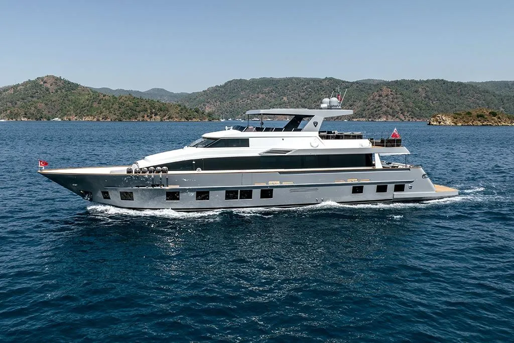With a length of approximately 32 meters, she offers a spacious main salon, 4 comfortable guest cabins, and generous exterior living areas. Accommodating 8 to 10 guests and featuring separate crew quarters, the yacht ensures both comfort and privacy for all onboard.