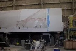 Westport hull includes bulkheads and stringers, lower deck soles, roughed-in plumbing, fuel tank, water tanks, and some interior cabinetry.