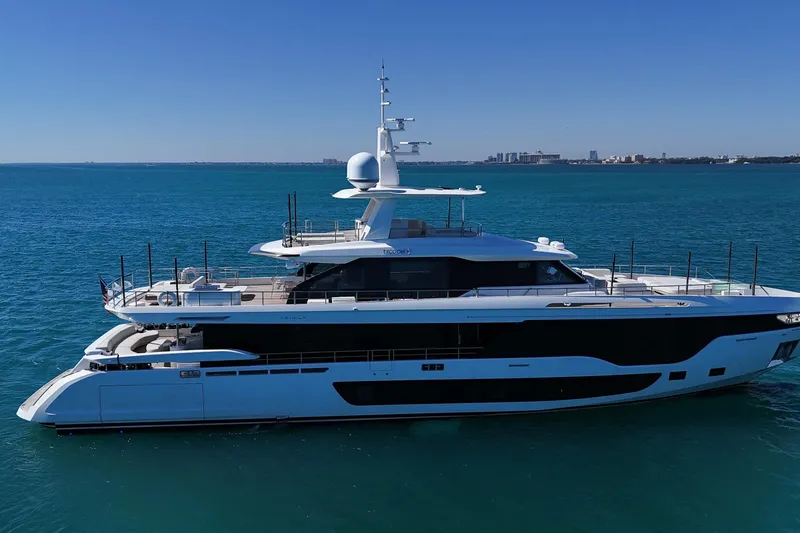 Immerse yourself in the pinnacle of luxury and performance with the Azimut Grand 36 Meter Trideck. A true flagship that blends commanding presence with uncompromising comfort, this yacht is built for discerning guests and seasoned charter patrons alike.