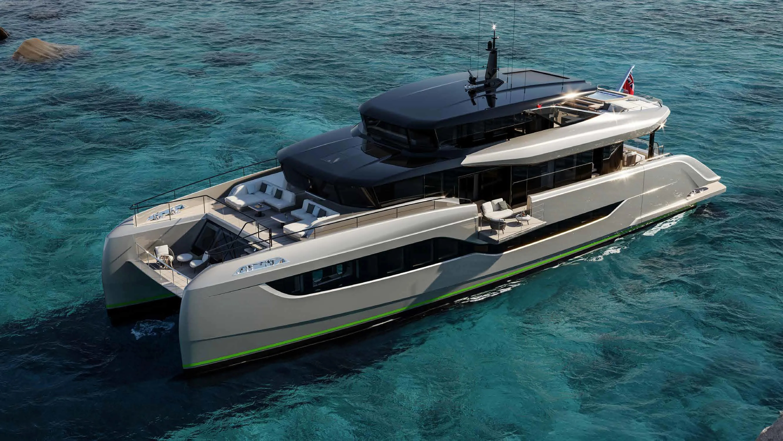 Every detail is crafted to elevate life onboard — from fold-out side terraces and a glass hot tub on the aft deck, to a hidden tender garage and generous upper lounge. The smart layout ensures seamless flow between interior and exterior spaces, perfect for entertaining or peaceful cruising.
