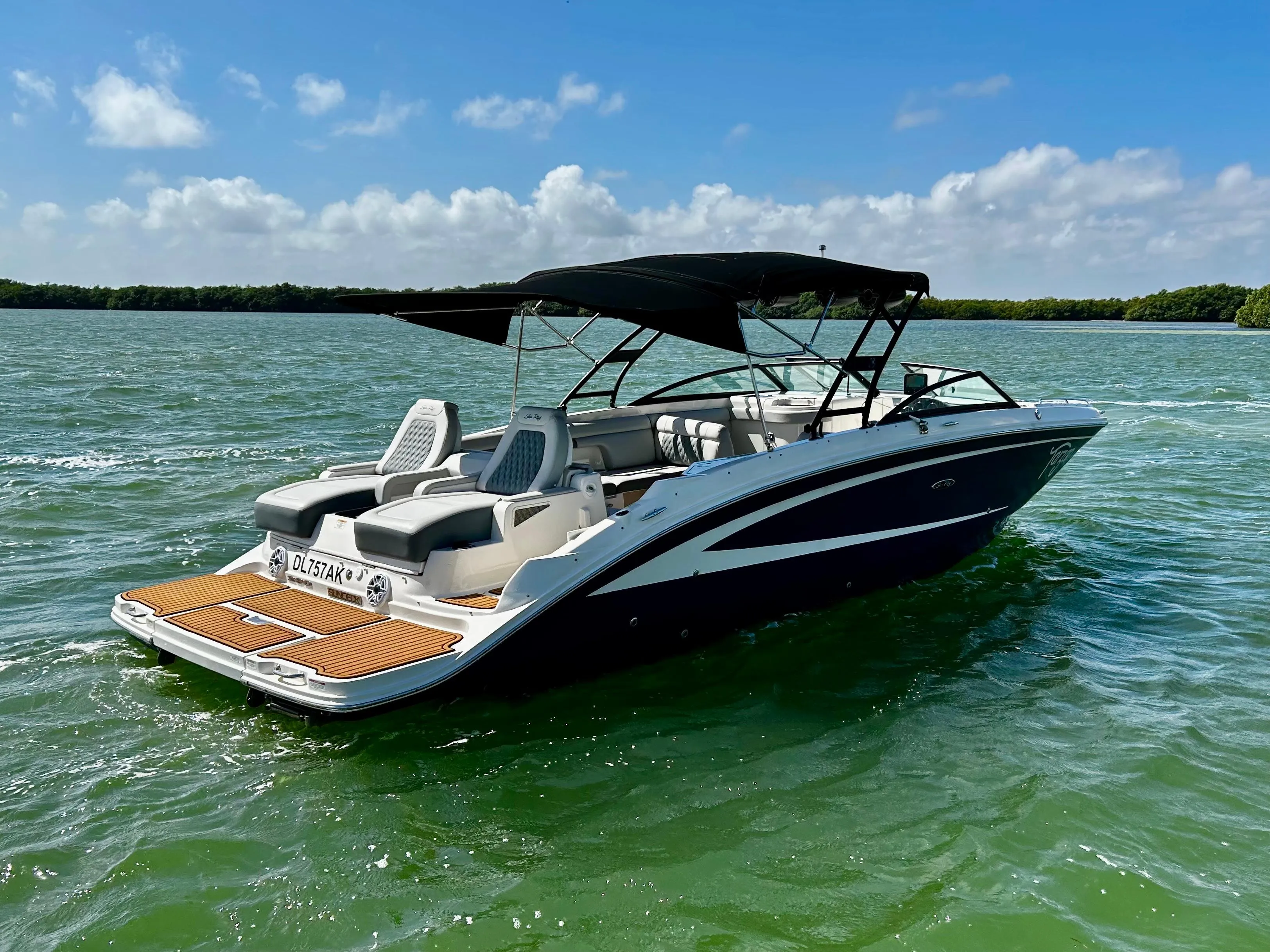 Not all accessories shown or described herein are standard equipment or even available as options. Some features and options may not be available when a boat is built for outside North America and/or has CE Certification. Options and features are subject to change without notice. Not all model-year boats may contain all the features or meet the specifications described herein. Confirm availability of all accessories and equipment with an authorized Sea Ray dealer prior to purchase.