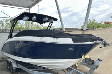 When an active family loves water sports, they generally want to share their good times with friends. That's where the SDX 290 comes in. It's among the most luxurious deck boats in its class. Its deep-V hull and wide "carried-forward" beam let you seat more friends in the oversized bow and huge cockpit, yet maintain a smooth, stable ride and great handling at high speed.