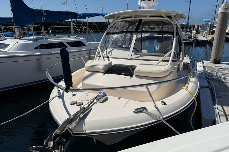 This beautiful 2023 Grady-White Adventure 218 has a walkaround cabin and a large, comfortable cockpit. This low-hour Grady is owned by a very knowledgable owner and is in pristine condition. She's great for fishing, diving, and surfing. With her stylish design and performance-driven Yamaha 250 four-stroke outboard engine, this vessel is sure to give you an enjoyable day on the water. She's got all the latest Garmin electronics too!