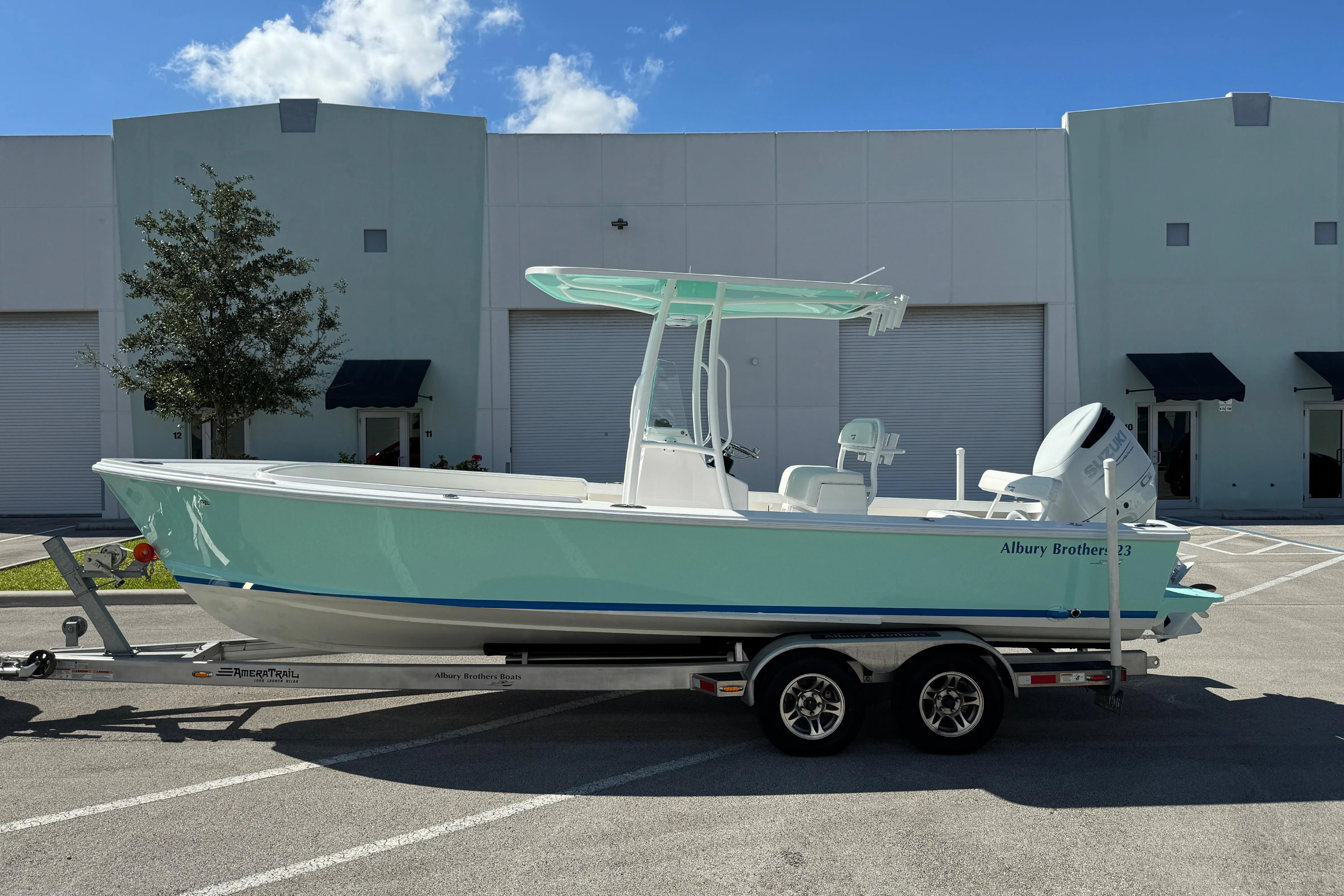 Heavy duty rub rail - white rail & insertSuzuki DF300APXW5, digital gauge and controls, SS propSpray railsPettit Vivid White anti-fouling bottom paint with epoxy primer barrier coatSea Frost colored hull using ISO gelcoatAwlgrip painted boot top - Marlin BluePort swim platform with undermount ladder Forward seating Interior with dual Sea Frost livewells aft, fishboxLimited Edition: Resin Infused Cockpit self-bailing overboard scuppers with exterior fiberglass cowlings18 gallon fresh water washdown systemShurflo 2000 GPH bilge pump with Ultra Float switchSecond Shurflo 2000 GPH bilge pump with Ultra Float switchLectro Tab electric trim tabsLumitec SeaBlaze X Blue & White under water lightsUflex Silver Hydraulic steering with SS wheel & powerknob Dual AGM 1500 dual-purpose marine batteriesRitchie SS-1002 Compass12 volt dual USB outletFire extinguisher mounted in consoleFuel filter / water seperatorDualPro 20amp 2 bank automatic battery chargerLumitec Blue under gunnel LED lightingBirdsall 40" Cooler Master with Fixed Back upgrade High density, closed cell, All White, console cushions Coaming bolster w/three seat cushions, alum. Backing for future backrestsFolding rear bench seat and removable backrestHard top with electronics box, rod holders, Blue/White LED spreader & courtesy lights Hard top underside color Sea Frost using ISO gelcoatPowdercoat all pipeworkGarmin 8616xsvB60 600W Thru Hull 20 degree tilted element Transducer Fusion Apollo MSRA-770 Bluetooth Stereo w/MHD600/4 Amp, 2-M6-880 & 2-M6-770 from JL AudioGarmin 215 VHF radio with AIS in and 4' Digital antennaAmeraTrail aluminum wheels, SS calipers