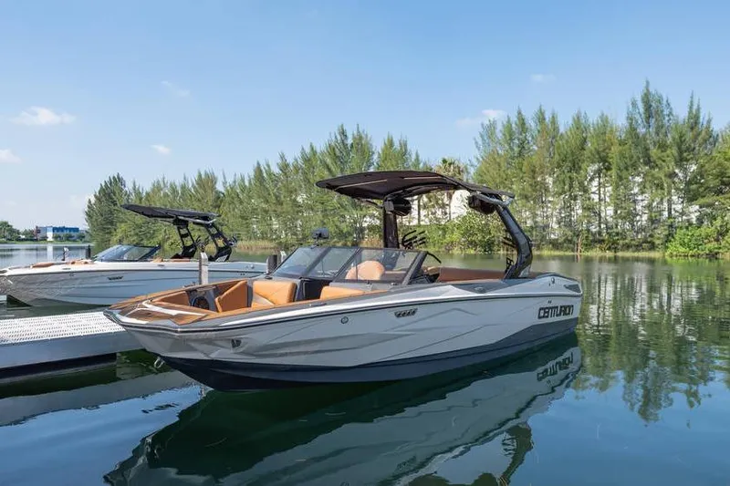The Nv233 takes it up a notch from the entry Centurion Nv213, with two more feet of length, room for two more passengers and the exotic sports car look that says high performance even when docked. It comes with up to 5000 pounds of available ballast, more than half of which can be filled in 90 seconds with available RAMFILL2. This isn’t a stripped-down version of a more expensive Centurion or an older design dressed-up new, the Nv233 is designed from the water up to deliver precisely what you need to get the most out of your water sports experience. The Nv233 offers world championship caliber surf, with the ability to propel you to your own best performance. Unique to the Nv Series design is the unobstructed GatorStepped space between the tower and the dash that facilitates easy communication directly with a rider – perfect for coaching. An abundance of built-in quality features means the Nv233 comes with everything you need to get on the water and enjoy a great ride from day one, but that doesn’t mean you can’t option up as well. This 23-foot Centurion leaves nothing to be desired except more time on the water.