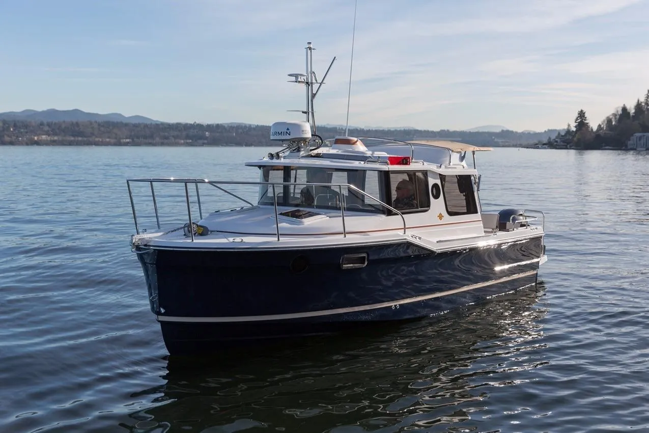 When it comes to trailerable tugs, none stand out quite like the Ranger Tugs R-23. The compact R-23 packs a whole lot of boat into its deceptively compact frame. Step aboard via the extended rear swim platform. The open cockpit provides room for fishing or simply enjoying the day.