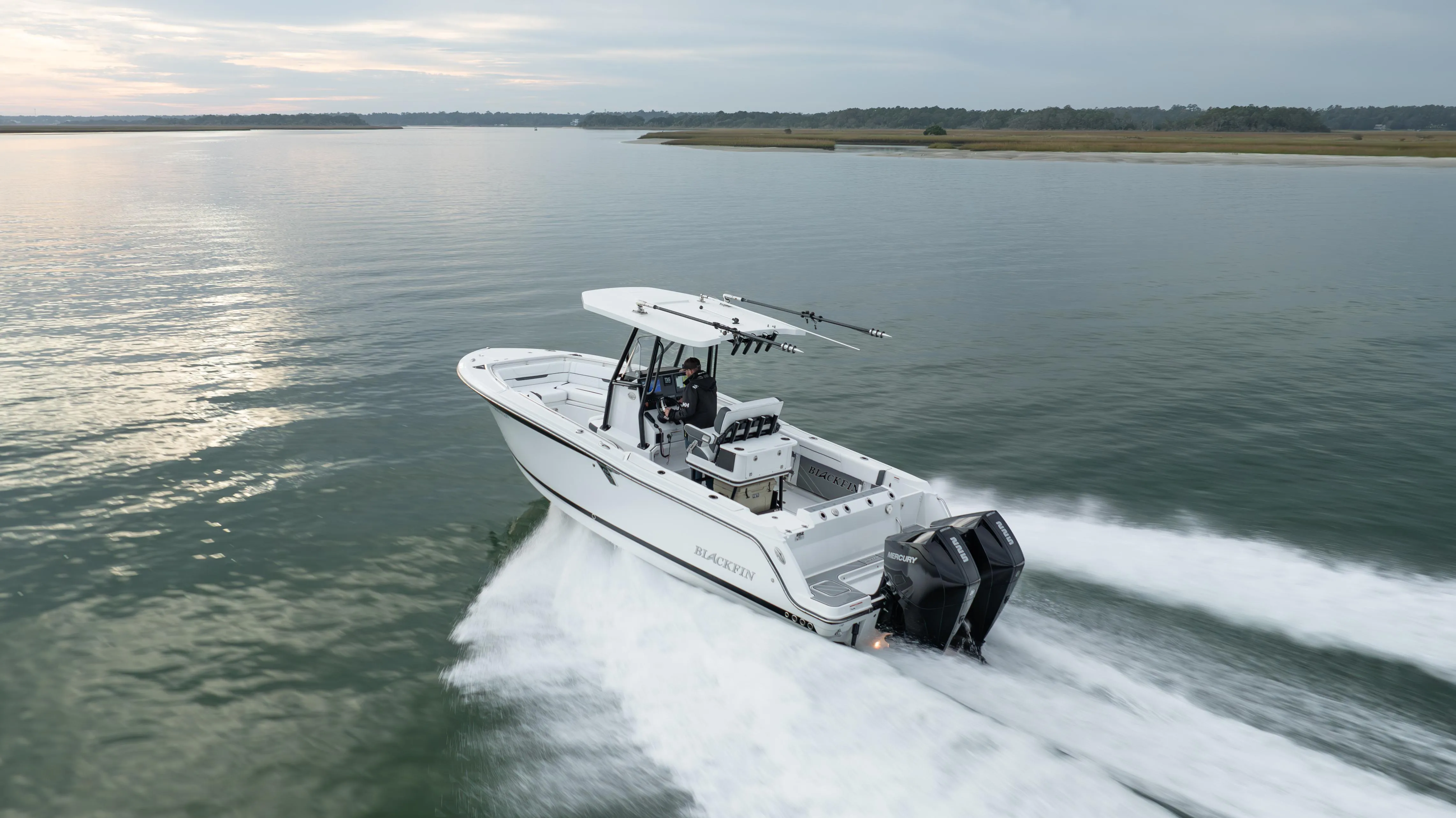 Check out this Loaded 2022 Blackfin 252 CC! It features White Hull Sides with Black Accents, Low Hours, Upgraded Motors, Carbon Outriggers, And Much More!