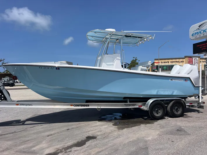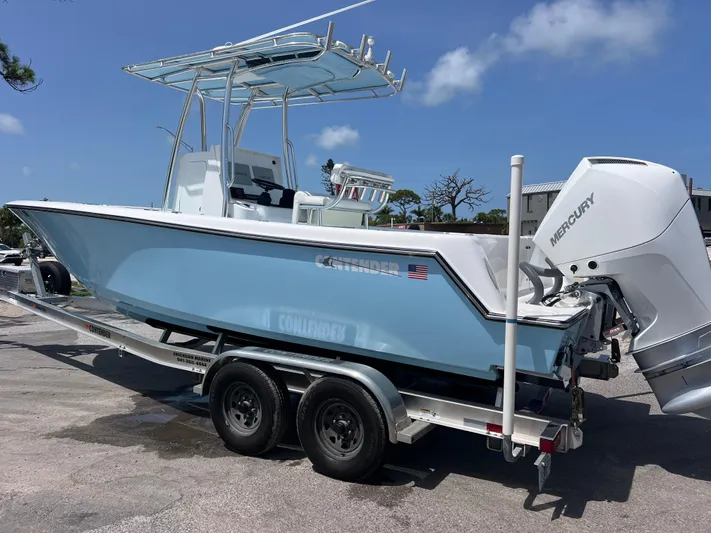 This Contender 25 T comes with the Amera Trail Trailer and it shows like a new boat! It is powered by twin Mercury 225 HP 4-Strokes with only 110 hours on them. The motors are 2024 model year. There is Mercury Warranty on the engines till 12/8/2028. The boat has never been fished. It is super clean and loaded with nice Electronics & Options including two Garmin 8612XSV's (12" Multi-Function Displays), VHF Radio, Radar - Fantom Dome, Big JL Audio Stereo System, XM Radio & Weather & Battery Charger. It also has a full Cover that comes with it. This boat is really in perfect condition. It is heavily waxed. Other options include, T-Top, Freshwater, Bench Seat Rear Fold Down, House Battery, Additional Bilge Pump, Live well Clear Lid, Live well Light, & Windshield. Aluminum trailer with Stainless Steal hardware (AmeraTrail) Trailer is included with Electric over Hydraulic brakes.